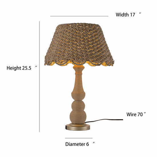 Infuse your home with a touch of bohemian elegance and practical design with this slim and stylish dimmable table lamp. The lamp features a unique scalloped shade that completely covers the bulb, casting a soft, warm glow perfect for creating a cozy atmosphere. Its slender body is expertly crafted from natural brown rope, giving it a textural, artisan feel that is both modern and rustic.