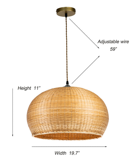 This pendant light Illuminate your space in boho-chic style with this one-light dome pendant. It showcases a handwoven design and has a neutral finish that goes with natural color palettes. Crafted of wicker caning in a natural finish, a handwoven shade uses a single bulb to diffuse bright light as it's dispersed throughout your space and it casts warm illumination that filters through its wicker sides, which makes it a perfect pick for any cozy coastal home.