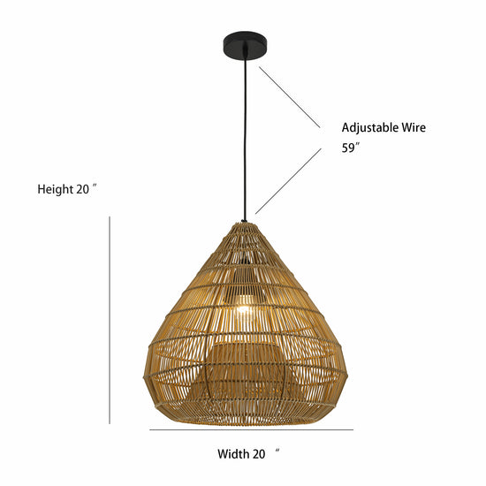 Serina 1-Light Wicker Outdoor Pendant Light, Coastal Boho Style Dome - Handwoven